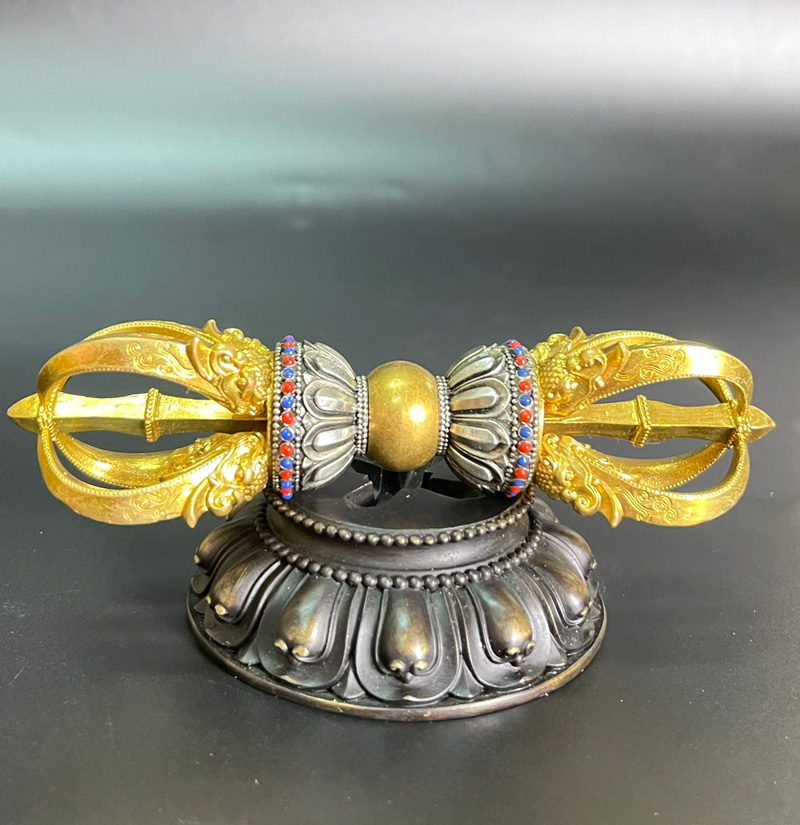 Chày Kim Cang 5 chẽ ở phía trên tượng trưng cho Ngũ Trí Phật: Đức Phật Đại Nhật, Đức Phật Bảo Sinh, Đức Phật Bất Không Thành Tựu, Đức Phật Thích Ca, Đức Phật Adida. Năm chẽ ở phía dưới tượng trưng năm vị Phật Mẫu: Chuẩn Đề Mẫu, Bảo Độ Mẫu, Kim Cương Luyện Mẫu, Tha Vô Năng Thắng Mẫu. Phần đài sen phía dưới bọc lấy phần chẽ có tám cánh, tượng trưng cho bát chính đạo.