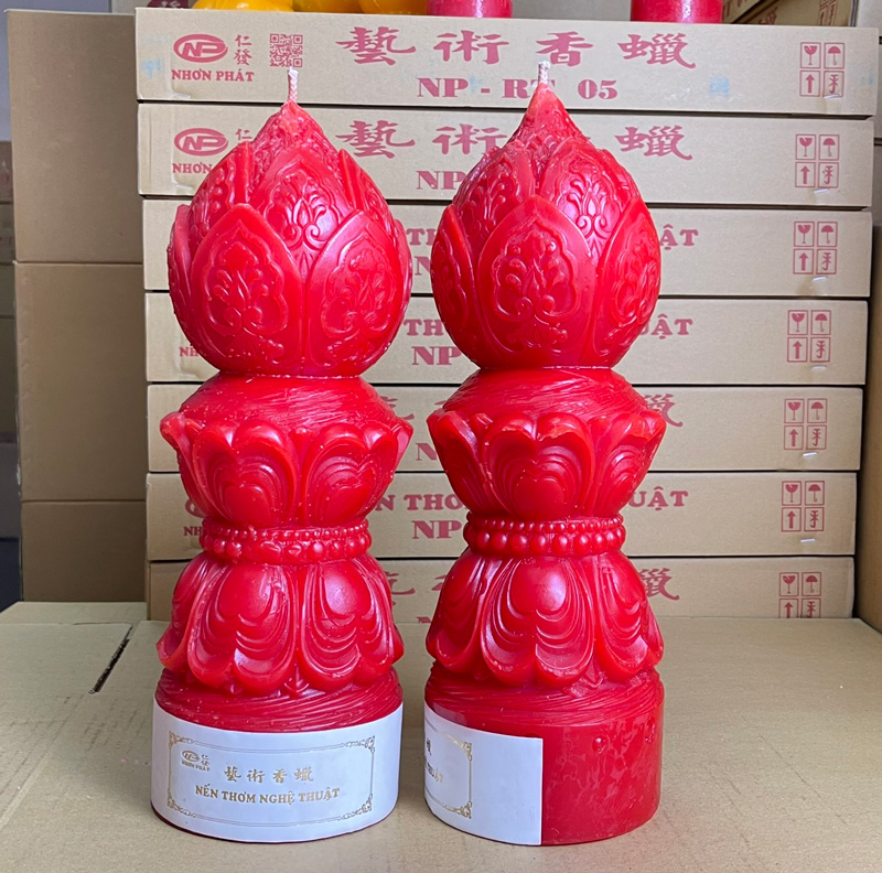 Đèn cầy đỏ thường được dùng để cầu may mắn, còn đèn cầy vàng mang ý nghĩa thanh tịnh.