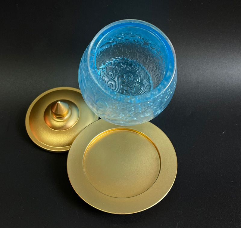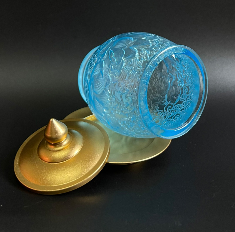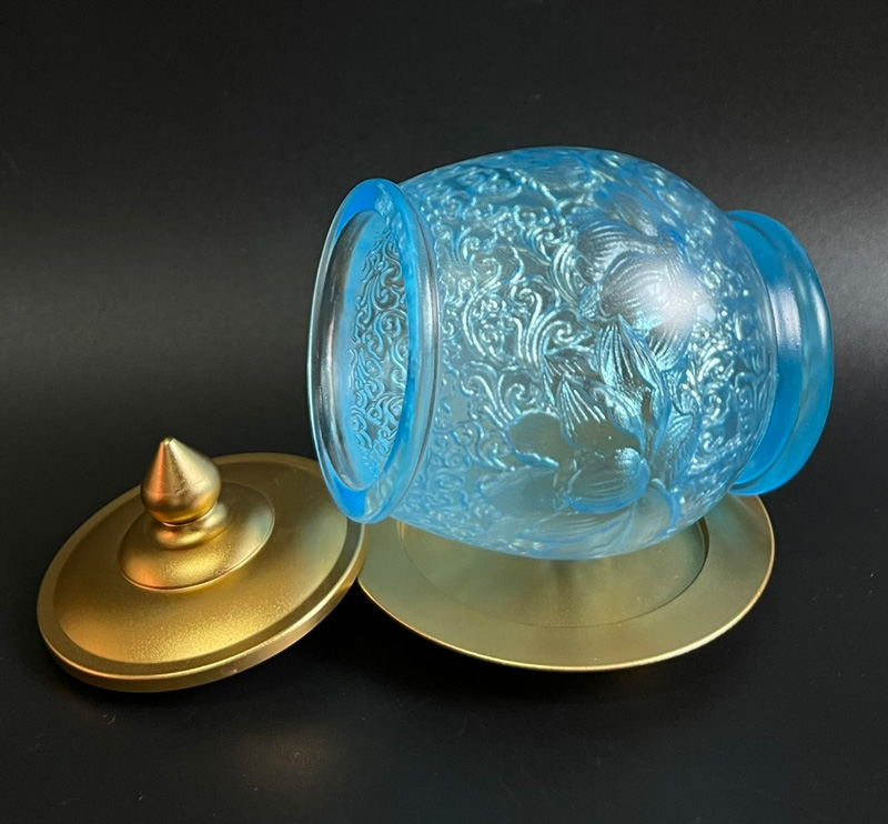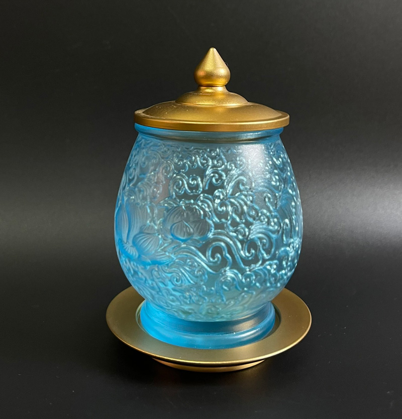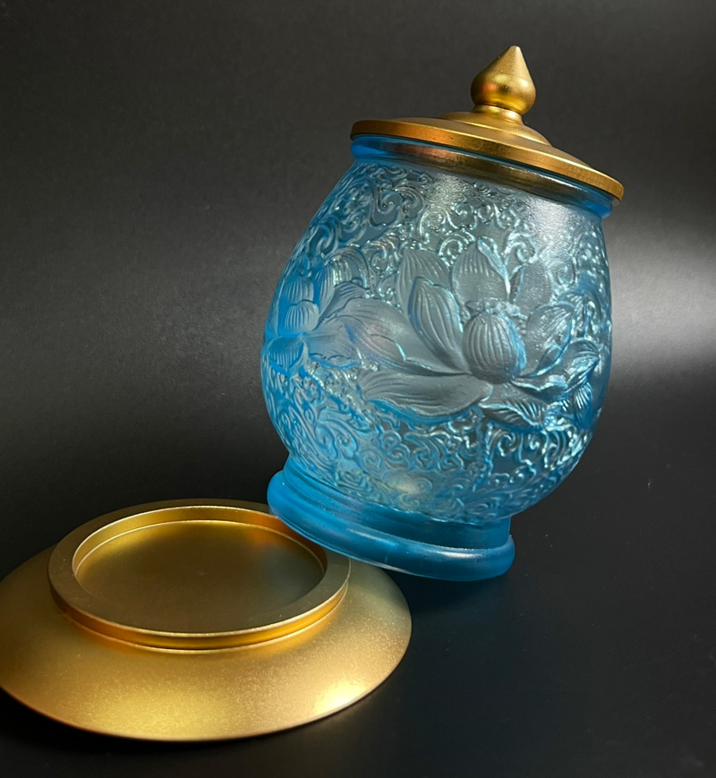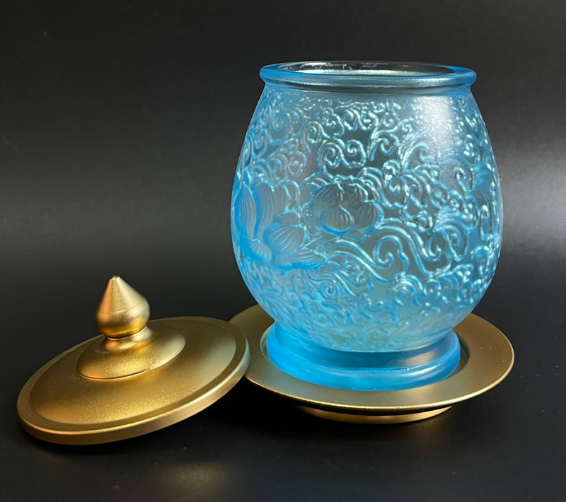 Ly cúng nước Phật màu xanh tạo nên cảm giác nhẹ nhàng, thanh thoát nhưng vẫn sâu sắc.