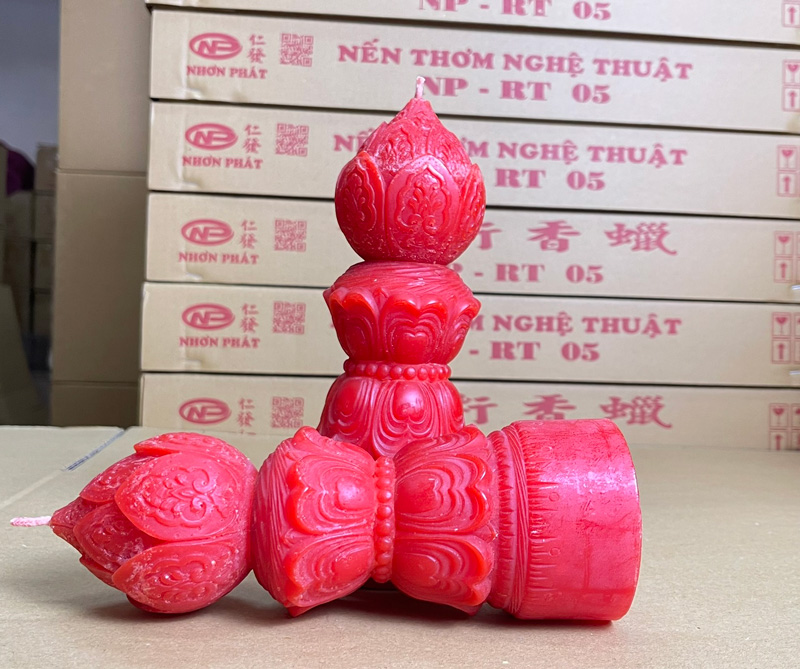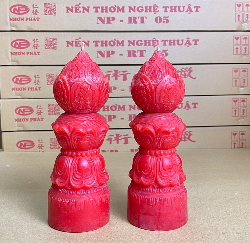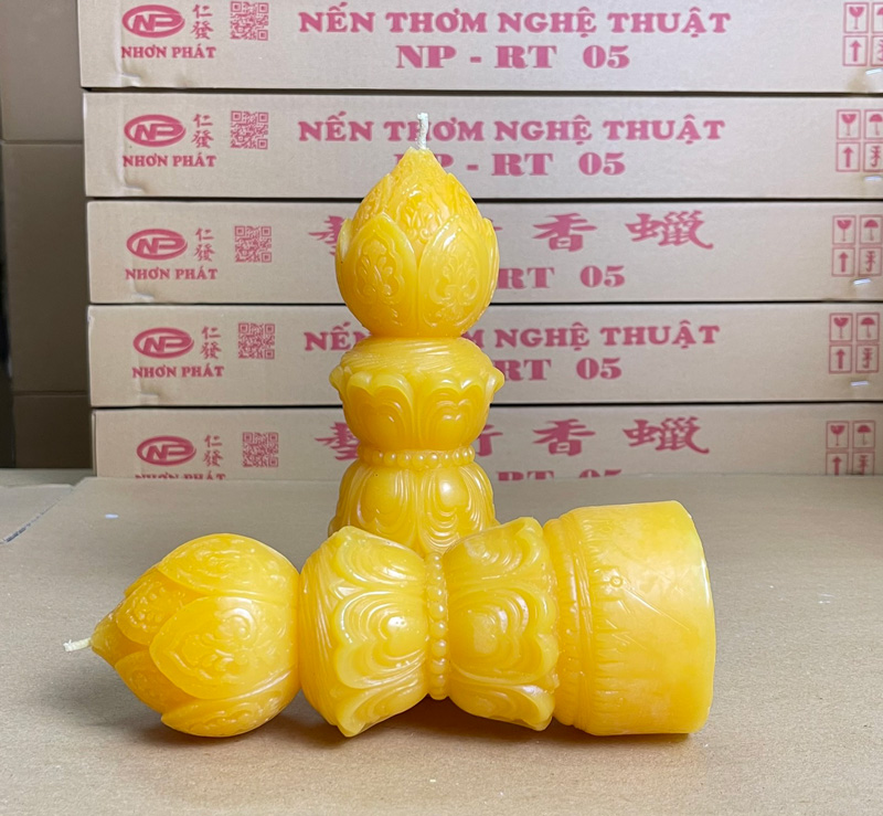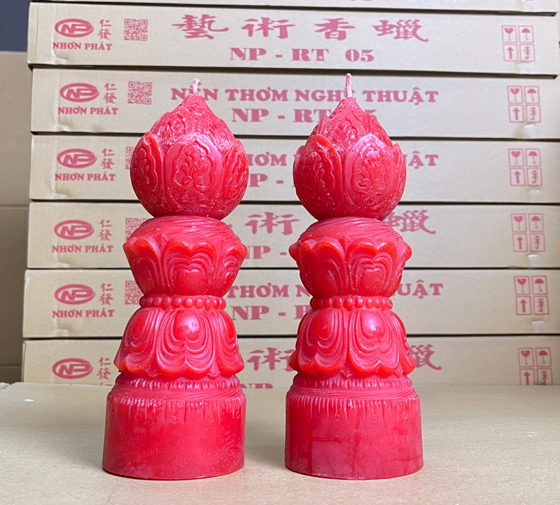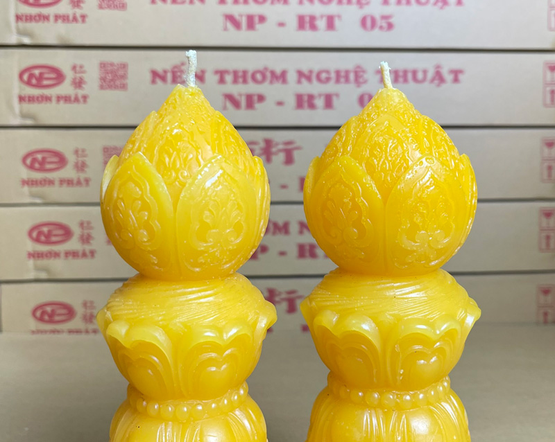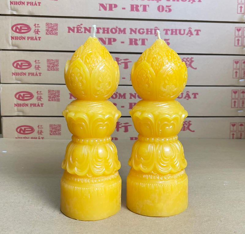 Là một loại nến nghệ thuật thường được dùng trong các dịp lễ Phật giáo, cúng kiếng hoặc trang trí không gian mang tính tâm linh, thanh tịnh.