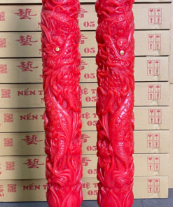 Kích thước cao: 39cm (trụ rồng số 2) Trọng lượng: 6.5kg/cặp Đường kính chân: 14cm Chất liệu: Sáp paraffin Thời gian cháy ~140 giờ (tiếng) Giá bán theo cặp Trụ rồng số 3 giá bán 320.000vnđ/cặp (cháy 120 tiếng) Trụ rồng số 4 giá bán 130.000vnđ/cặp (cháy 45 tiếng)