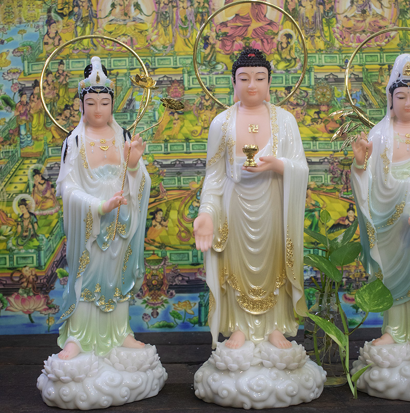 Ðại Thế Chí Bồ Tát là một trong Tam Thánh ở cõi Tây Phương. Mà đức giáo chủ là Phật A Di Ðà. Ðức Quán Thế Âm và Ðức Ðại Thế Chí cùng đến giúp Ngài tiếp dẫn chúng sanh về cõi Cực Lạc. Cho nên pháp môn niệm Phật rất được các Ngài đề cao.