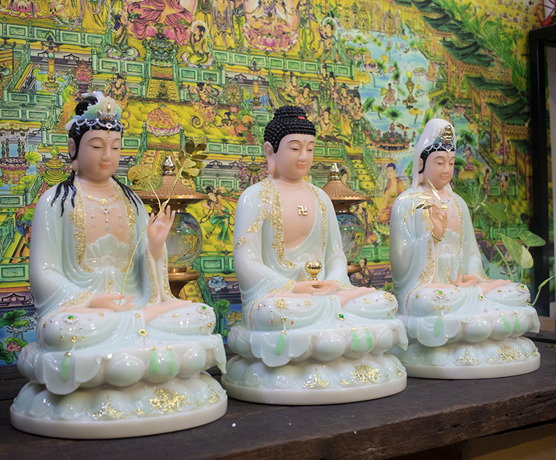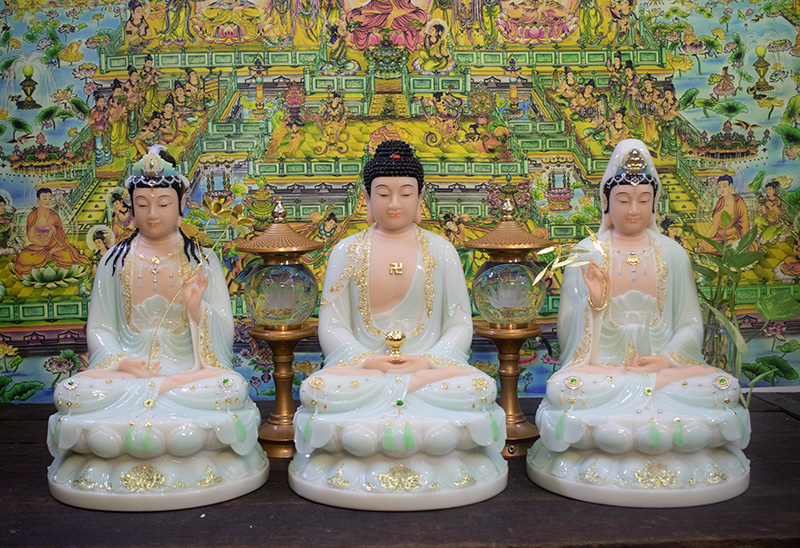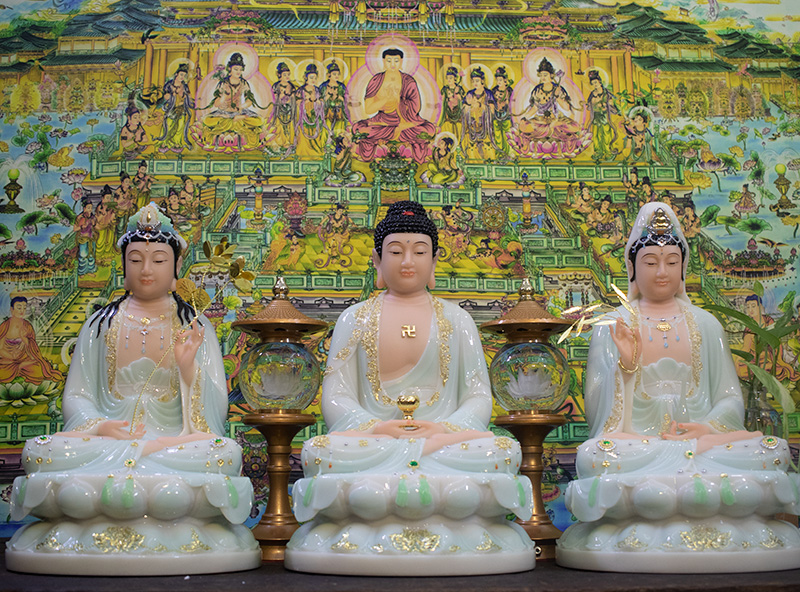 Chúng ta thờ tượng Tây Phương Tam Thánh đẹp là mỗi ngày đều thực hành theo tâm Từ Bi của Quán Thế Âm. Học tập Trí Tuệ và Ý Chí của Đại Thế Chí Bồ Tát.