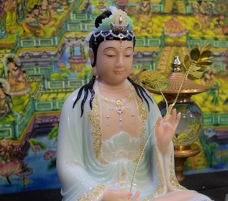 Bồ Tát Quán Thế Âm được nhiều người nhắc đến và tạc tượng lộ thiên ở các chùa, tu viện, tùng lâm. Để ca ngợi hạnh kham nhẫn và đức từ bi cao thượng. Cảnh giới Tịnh Độ là cõi chư Phật trong sạch đẹp đẽ như ngọc lưu ly, xa cừ, xích châu, mã não. Thì tâm chúng sanh muốn về cõi Phật cũng phải thanh tịnh sáng suốt. Vô chấp và vô ngã tuyệt đối.